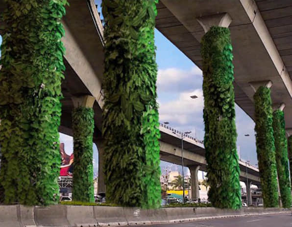橋墩綠化,可應(yīng)用于跨路橋、人行天橋、高架橋、立交橋、高速公路、輕軌等橋墩的綠化美化,用于城市道路景觀提升,提升城市整體形象。