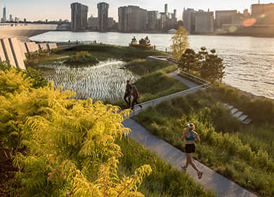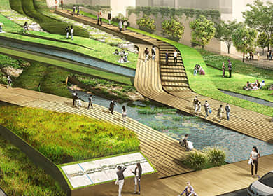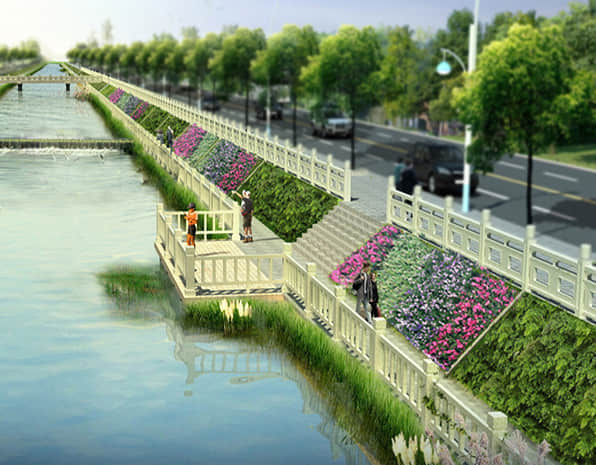 河堤綠化,可以在江、河、湖、渠(干支以上)的堤上,配合自然環(huán)境,種植適合當(dāng)?shù)貤l件的灌木和草本植物,以保土護(hù)堤,增強(qiáng)防護(hù)能力,同時(shí)提升河道生態(tài)景觀。